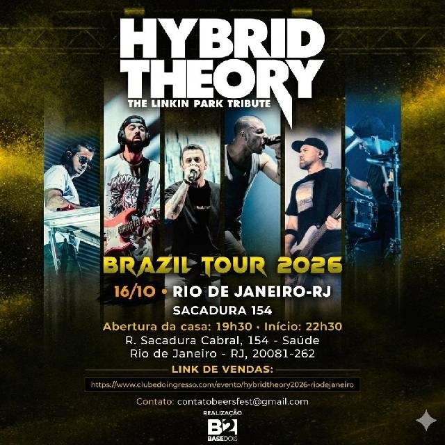 Depois do grande sucesso da tour Brasil 2024, o maior Tributo a Linkin Park do mundo está de volta ao Brasil. Diretamente de Portugal, HYBRID THEORY está de volta ao Rio de Janeiro. Prepare-se para reviver os sucessos da carreira do Linkin Park na voz inesquecível de Chester Bennignton.