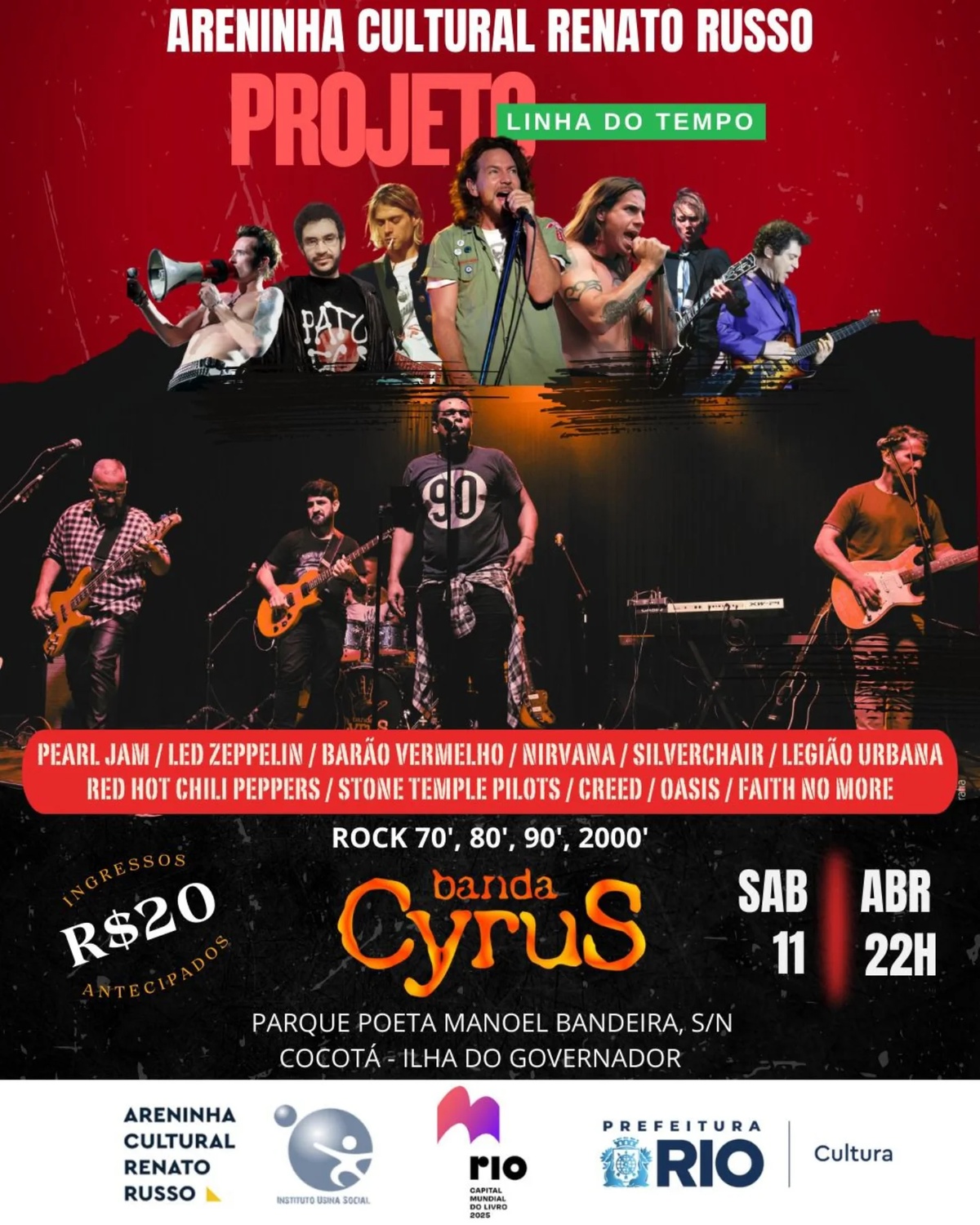 A Banda Cyrus sobe ao palco da Areninha Renato Russo apresentando o Projeto Linha do Tempo.