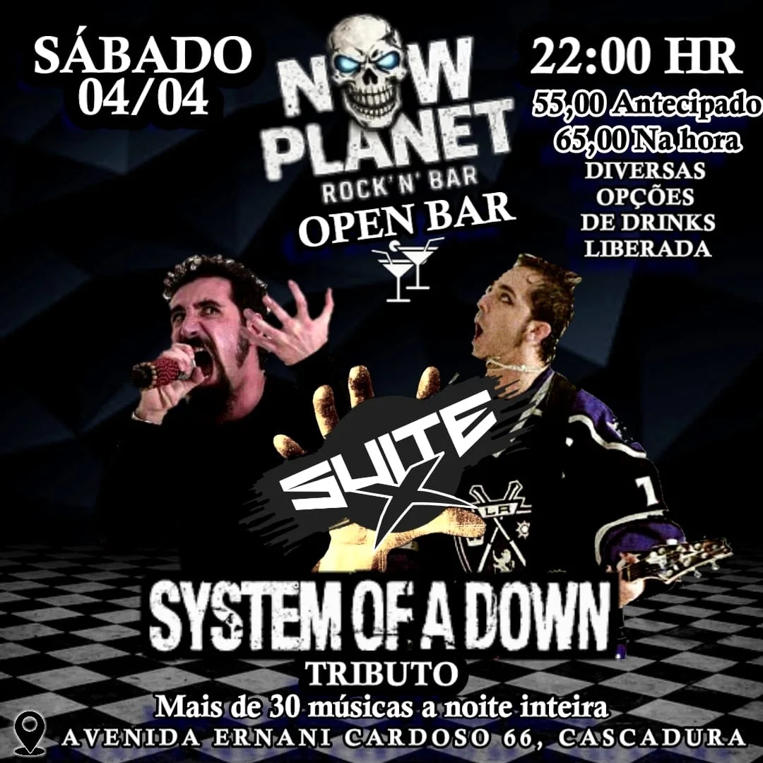 SABADO TEM OPEN BAR DE DRINKS ( CONSULTE OPÇÕES NO BAR DO EVENTO) DE 22 AS 2 DA MANHÃ OS MELHORES DRINKS DO MOMENTO E SYSTEM OF A DOWN ATÉ O TALO PRA VC TA BOM AMOR. PRA VC QUE NÃO BEBE TBM VAI TER A VENDA DO INGRESSO A 15 REAIS ANTECIPADO PRA VC TA AMOR 🔥NESSE EVENTO COM SOMENTE A SUITE X COMEÇAMOS A TOCAR MEIA NOITE,MAS 22 HRS JA COMEÇA O OPEN BAR E 20 HRS JA TEM SOM NA CASA! BROTAAAAAAA